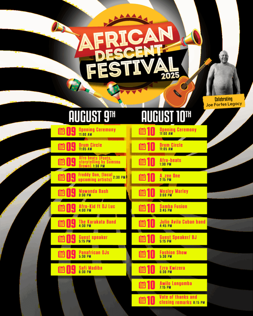 Attractions. Meet Our Artists Meet the artists who will be performing at the African Descent Festival 2025 Event Schedule